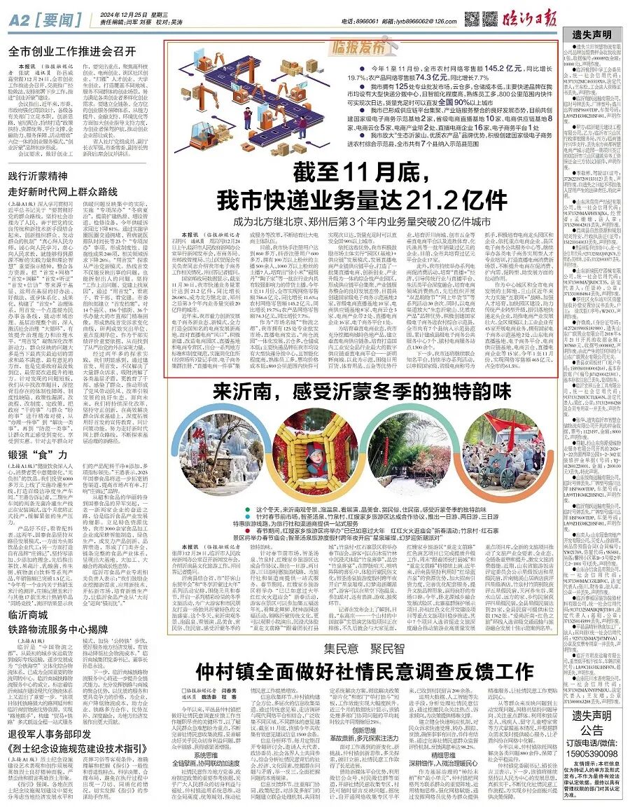 12月24日上午,临沂市人民政府新闻办公室举行新闻发布会,市商务局、市邮政管理局、兰山区贸促会有关负责同志介绍我市电子商务工作相关情况,并回答记者提问。