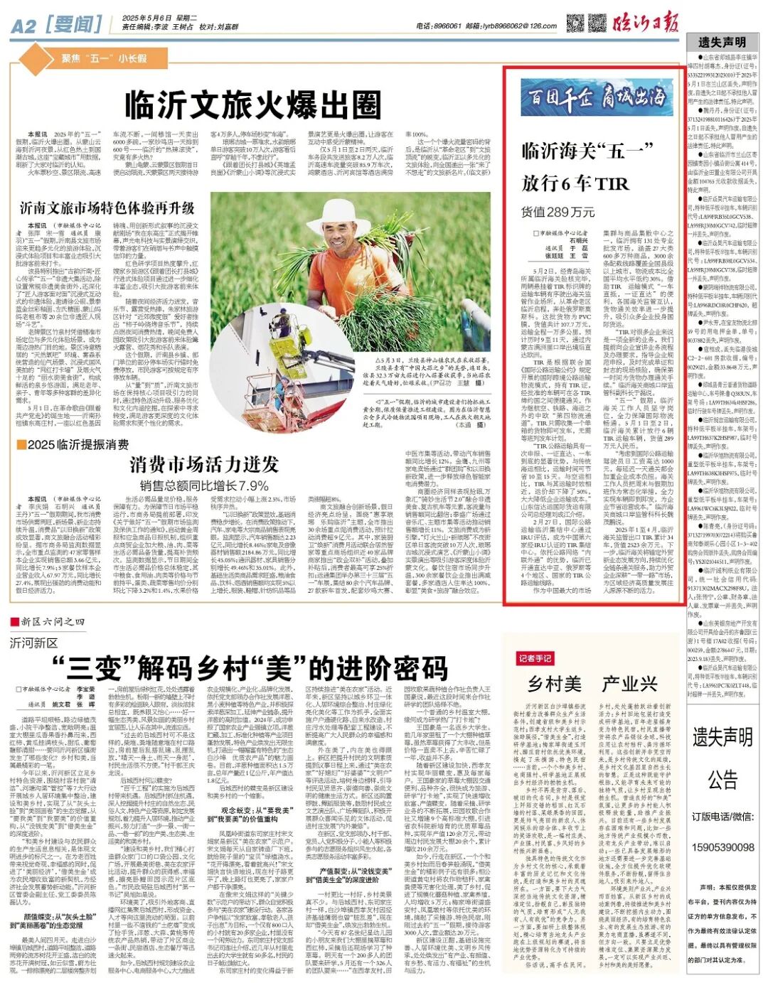 五一假期,临沂海关工作人员坚守岗位,全力保障国际物流畅通。2025年5月1日至2日,临沂海关累计放行6辆TIR运输车辆,货值289万元人民币。