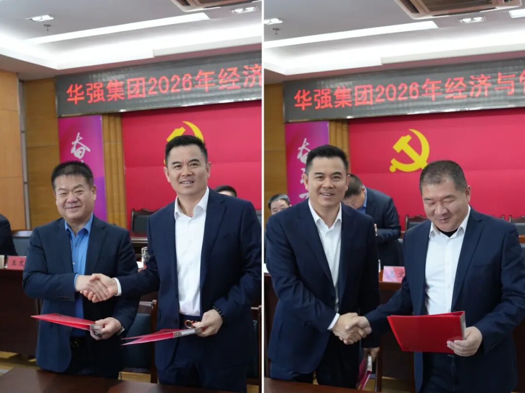会上,党委委员、副总经理姜斌宣读华强集团市场经营管理办法;党委委员、副总经理王文鹏宣读千分考核条例;副总经理李庆刚宣读集团各市场2026年经济指标;副总经理解松林宣读消防管理规定。