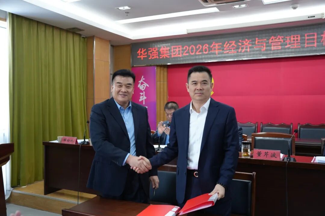 董芹波在工作部署中指出,2026年是华强集团抢抓行业复苏机遇、实现突破提升的关键之年,全年市场经济任务与管理目标是经集团党委科学研判制定,既直面挑战又紧扣趋势,为集团高质量发展锚定了清晰方向。各市场单位要将任务层层分解、压实到人,通过签订责任书激发了全员干劲,市场经理们斗志昂扬的表态彰显了攻坚决心与务实作风,接下来,要激活动能,严守安全廉洁底线,以实干作风狠抓落实,为集团明年经济工作打下坚实基础,在临沂商城发展大局中彰显华强担当。